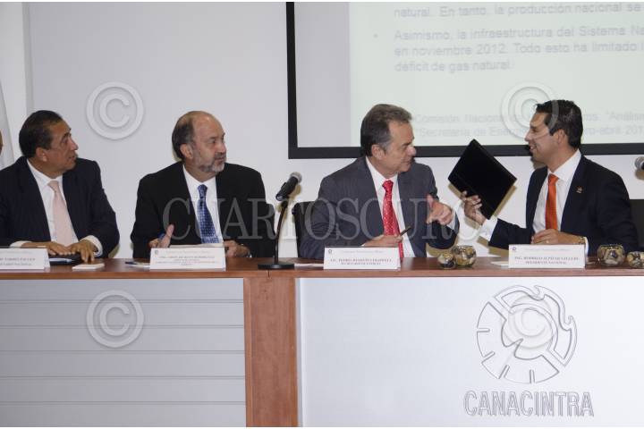 MÉXICO, D.F., 24JUNIO2013.- Pedro Joaquín Coldwell, Secretario de Energía explica la Estratégia de Gas Natural para el País, previo a la firma de acuerdo de colaboración con la Cámara Nacional de la Industria de Transformación (Canacitra) encabezada por Rodrígo Alpízar Vallejo. FOTO: EMILIANO RUVAL / CUARTOSCURO.COM