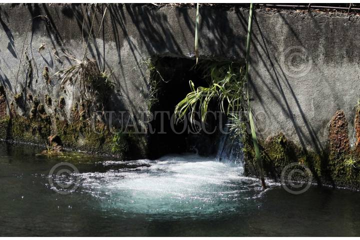 El agua brota fría y cristalina del manantial de Palo Escrito, después circula por canales con destino a los plantíos del municipio de Emiliano Zapata.