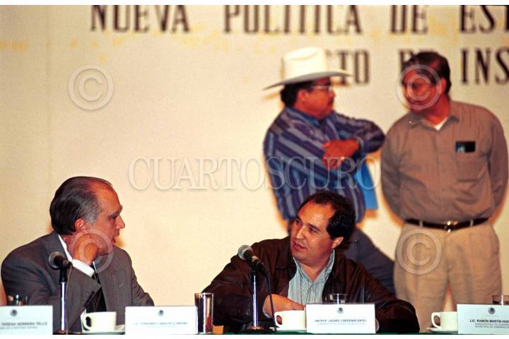 Pedro Cedisola, Fernando Canales Clariond y Luis H. Alvarez platican amenamente en la presentación del Programa Sectorial Agrario 2001-2006, en la residencia oficial de los Pinos. FOTO: Christian Palma/CUARTOSCURO.COM