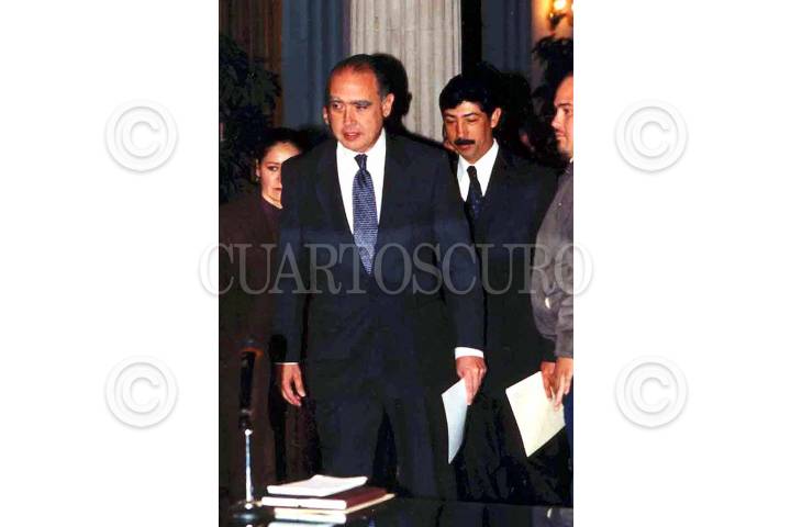 Este medio día, en una ceremonia sin acceso para los medios de comunicación, el presidente Vicente Fox hizo oficial la salida de Jorge Castañeda de la cancillería mexicana, su lugar lo tomará Luis Ernesto Derbéz, mientras que la Secretaría de Economía quedará a cargo del todavía Gobernador de Nuevo León, Fernándo Canales Clariond. FOTO: Susana Navarrete/Archivo/CUARTOSCURO.COM