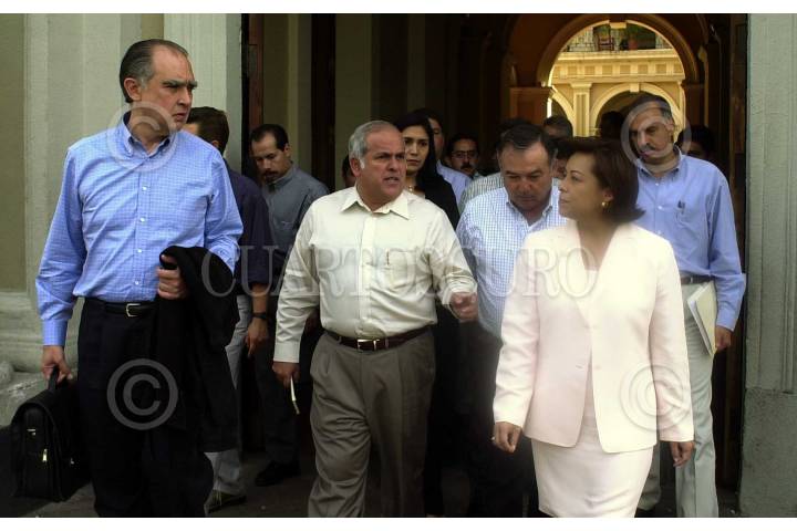 Después de una reunión de trabajo del presidente Vicente Fox con la dirigencia nacional y gobernadores del PAN, Luis Felipe Bravo Mena, el diputado Felipe Calderón Hinojosa y el gobernador de Nuevo León, Fernando Canales Clariond, ofrecierón una conferencia de prensa. FOTO: Oswaldo Ramírez/CUARTOSCURO.COM