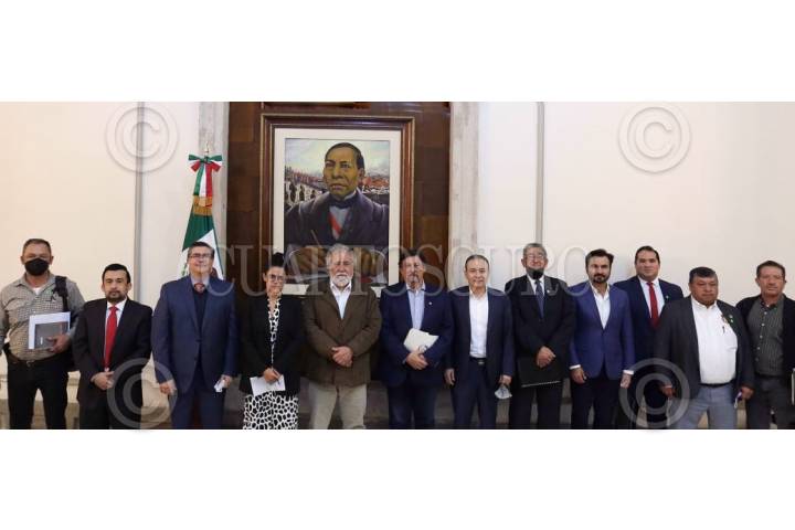 Alejandro Encinas Rodríguez, subsecretario de Derechos Humanos, Población y Migración; Luisa María Alcalde Luján, secretaria del Trabajo y Previsión Social; Alfonso Durazo Montaño, gobernador de Sonora, y representantes de la sección 65 del sindicato minero, encabezaron la reunión en donde se abordaron temas asociados al Plan de Justicia para Cananea.