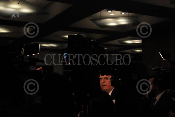 Marcelo Ebrard, canciller mexicano, habla con los medios al término del evento.