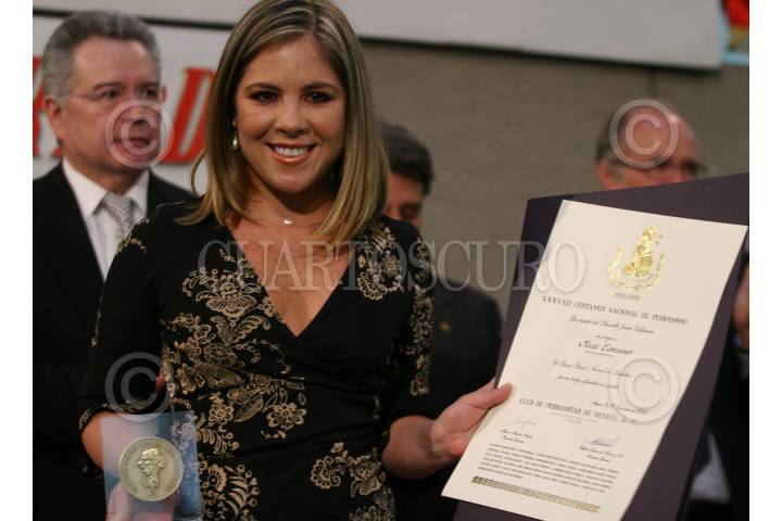 MÉXICO D.F., 10DICIEMBRE2008.- Sissi Cancino recibió el premio nacional de periodismo por Reportaje Periodístico de Carácter Ecológico durante la entrega del XXXVIII Certamen Nacional de Periodismo que se realizo en el Club de Periodistas de México. FOTO: RODOLFO ANGULO/CUARTOSCURO.COM