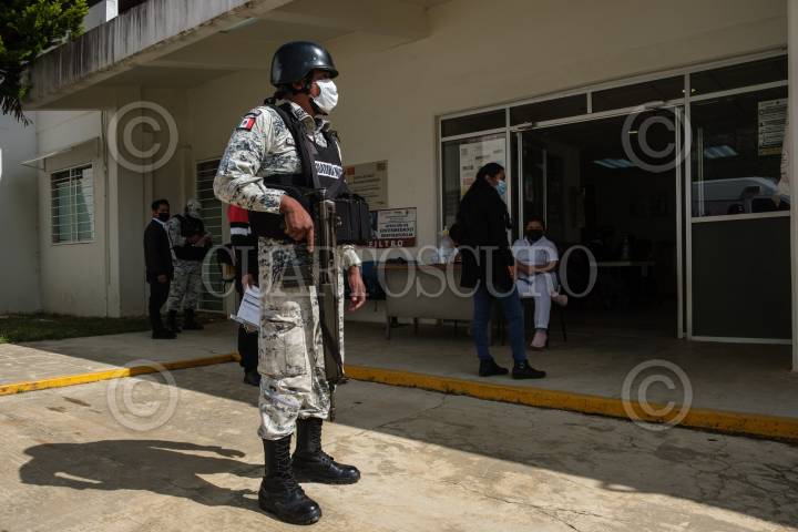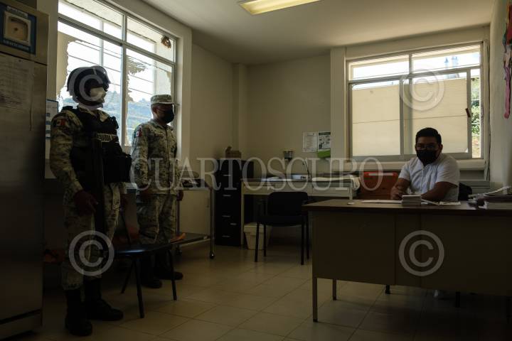 Vista del puesto de vacunación vacío en el Centro de Salud municipal. La desinformación y miedo ocasionan que los adultos mayores no acudan a vacunarse.