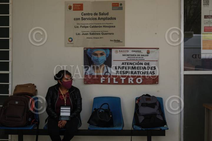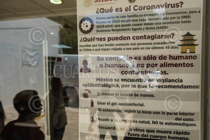 Vista a detalle de un cartel informativo sobre el Covid 19, realizado por la secretaria de Salud Estatal dentro del Centro de Salud municipal.
