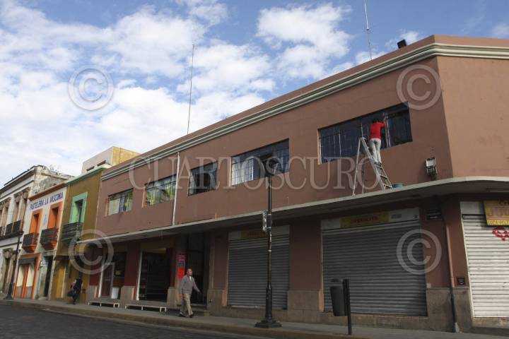OAXACA, OAXACA, 09FEBRERO2012.- Una mujer coloca sobre una corniza una esclaera para poder limpiar las ventanas de una tienda en el Centro Histórico de la ciudad de Oaxaca. FOTO: ARTURO PÉREZ ALFONSO/CUARTOSCURO.COM