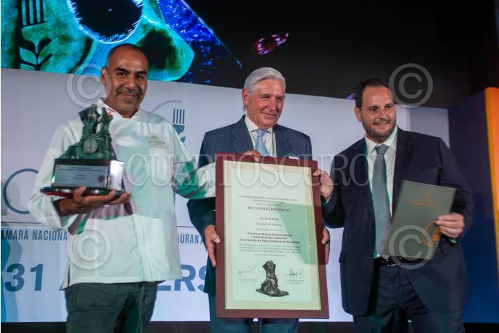 Reconocimiento al restaurante "El Andalus", por ser Premio al Mérito Restaurantero "Antonio Ariza Cañilla" a la comida de Especialidades Extranjeras, en la 31 entrega del Premio al Mérito Restaurantero