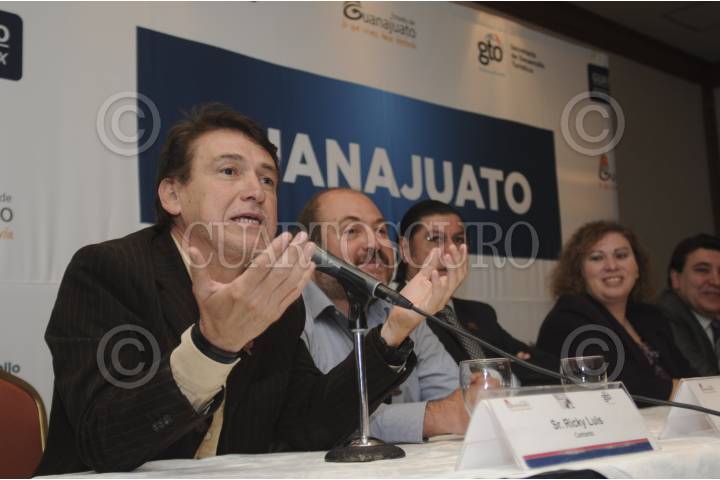 MÉXICO, D.F., 25OCTUBRE2011.- El cantante Ricky Luis es acompañado por el cineasta Rene Cardona, el músico, Mario Gutierrez y Gloria Magaly Cano, secretaria de Tursimo del Estado de Guanajuato para detallar en conferencia de prensa la mañana de hoy las actividades del 2do Festival Internacional José Alfredo Jiménez que se realizara del 18 de Noviembre al 4 de Diciembre en esta ciudad. FOTOS: FRANCISCO RODRÍGUEZ/CUARTOSCURO.COM