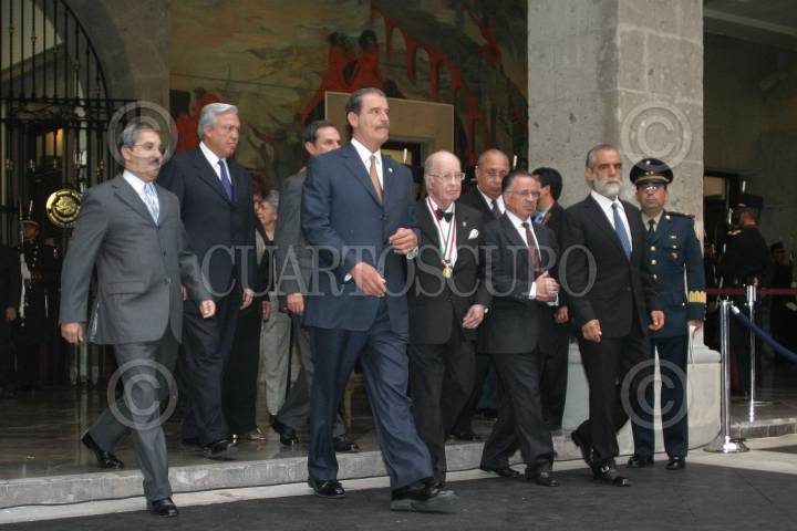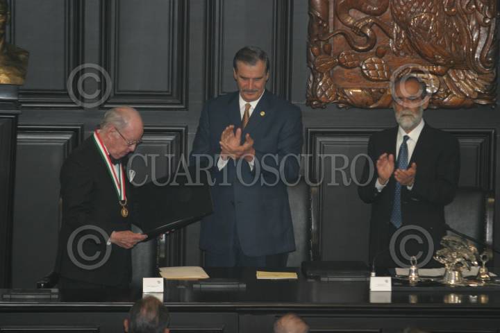 MEXICO, D.F. 07OCTUBRE2004.- El doctor Carlos Canseco Gonzalez recibió de manos del presidente Vicente Fox la medalla Belisario Dominguez, en el senado de la República. FOTO: Nelly Salas/CUARTOSCURO.COM