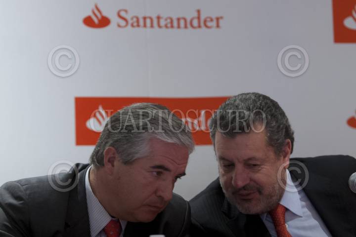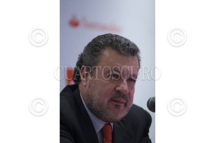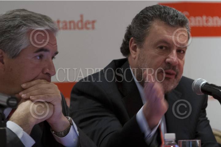 MÉXICO, D.F., 13FEBRERO2012.- Marcos Martínez Gavica Presidente Ejecutivo del Banco Santander, acompañado de Pedro Moreno Cantalejo, Vicepresidente de Administración de Finanzas, durante la Presentación de Resultados del 4to trimestres del 2011. FOTO: GUILLERMO PEREA/CUARTOSCURO.COM