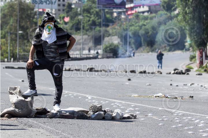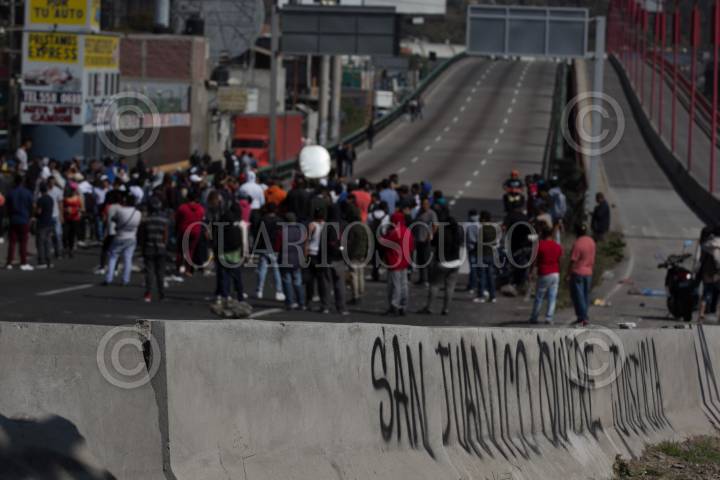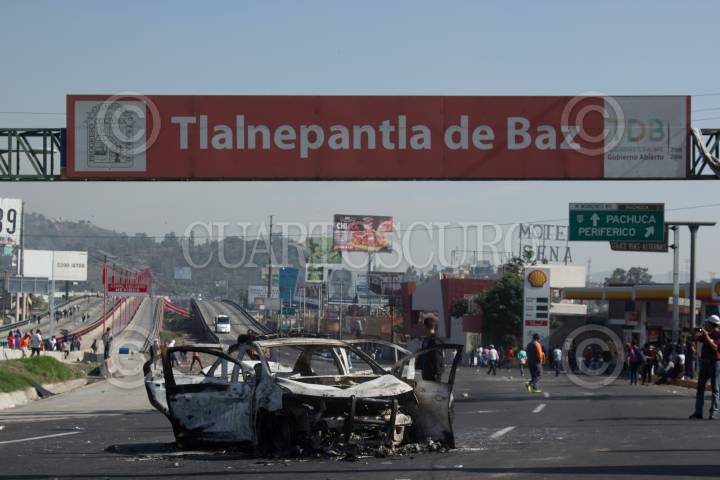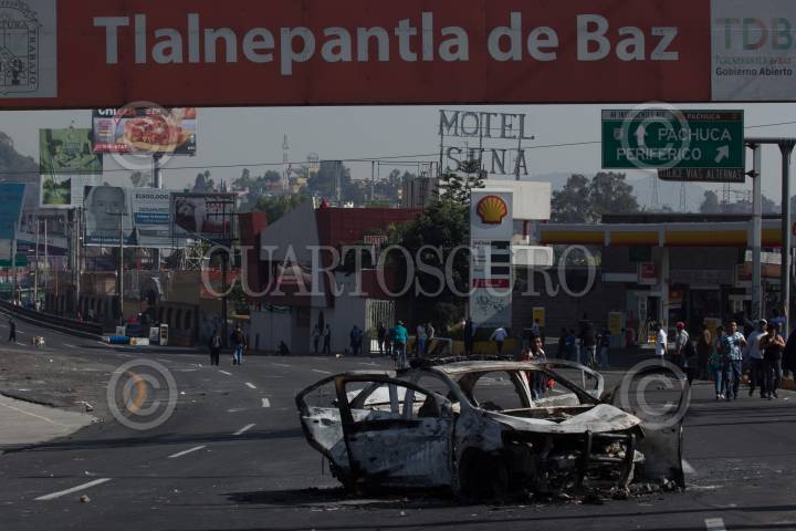 SAN JUAN IXHUATEPEC, ESTADO DE MÉXICO, 12NOVIEMBRE2018.- Ayer en la media noche policías capitalinos ingresaron a las calles de San Juanico en donde golpearon a varios vecinos e ingresaron a varios domicilios, así lo reportaron lugareños, como respuesta bloquearon desde esas horas la autopista México-Pachuca, lo que aha generado gran caos vial. La Secretaría de Seguridad Pública de la Ciudad informó hoy por la mañana que sus elementos persiguieron y detuvieron a varios sujetos que pocos minutos habían asaltado a un automovilista. Tras el bloqueo un grupo de desconocidos saqueo un un centro comercial de la zona, pero los vecinos recuperaron los artículos y los regresaron en varios carritos. Vecinos exigieron una explicación a las acciones policiales capitalinas, varias patrullas y llantas han sido quemadas. FOTO: GALO CAÑAS /CUARTOSCURO.COM
