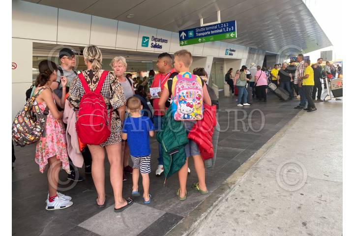 Miles de turistas nacionales y extranjeros se vieron afectados por el tránsito en el bulevar Luis Donaldo Colosio de Cancún, Quintana Roo, lo que provocó que se quedaran varados en la terminal aérea de la entidad.