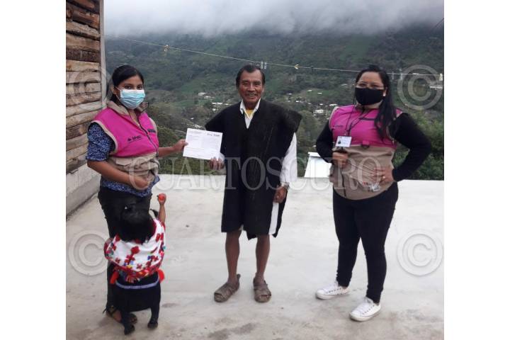 Los Capacitadores y Capacitadoras Asistentes Electorales (CAES) comenzaron las visitas a los ciudadanos que formarán parte de las casillas para la Revocación de Mandato. En la imagen con una persona en Chiapas.