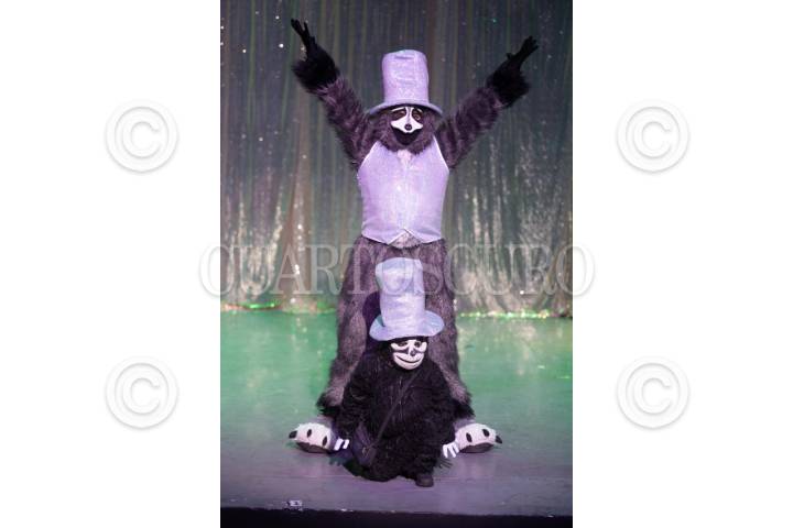 CIUDA DE MÉXICO, 12MARZO2024. Donovan González como el Mapache y Yolanda Biviano como el Zorrillito durante la presentación de la obra de teatro "Caperucita Roja y el Lobo Feroz, El Musical", en el Teatro Rafael Solana. FOTO: EDGAR NEGRETE LIRA/CUARTOSCURO.COM