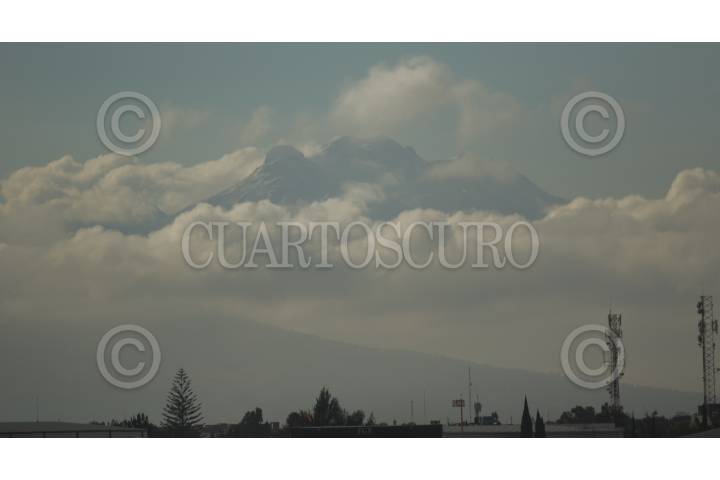 Volcan "La Mujer Dormida" rodeado de nubes visto desde el oriente de la Capital Mexicana