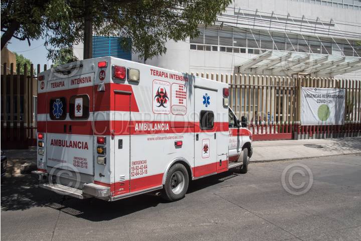 Una ambulancia en espera de poder ser aceptada a la Zona Triage Respiratorio Covid-19 del Hospital General de México.