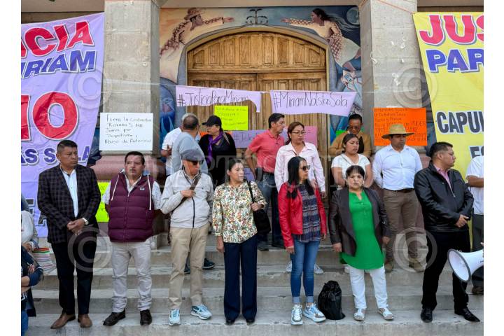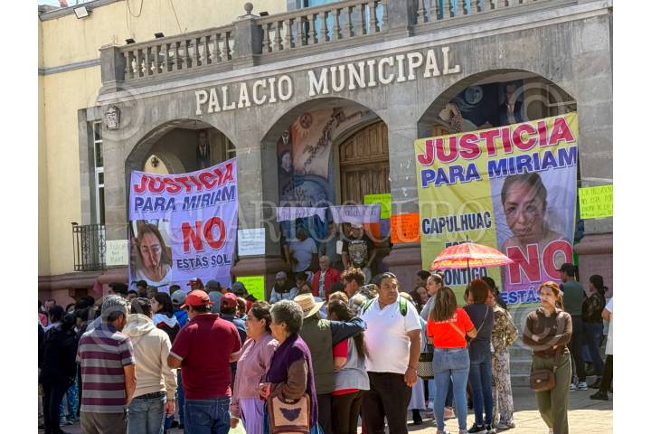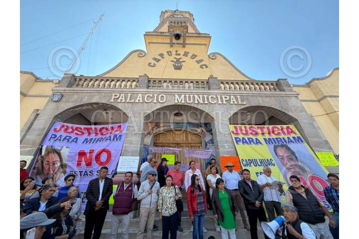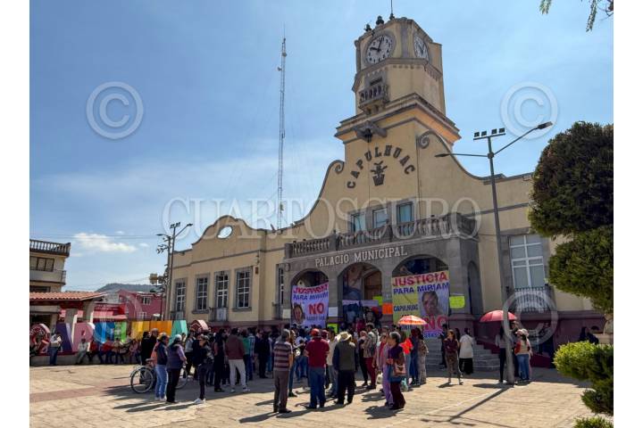 CAPULHUAC, ESTADO DE MÉXICO, 06MAYO2025.- Vecinos y regidores de Capulhuac realizaron una asamblea afuera del ayuntamiento para solicitar la destitución de la presidenta municipal después de ser acusada por la presunta agresión a una trabajadora del DIF municipal. FOTO: CRISANTA ESPINOSA AGUILAR /CUARTOSCURO.COM