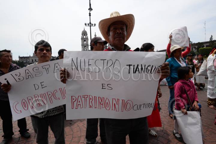 TOLUCA, ESTADO DE MÉXICO, 27ABRIL2017.- Habitantes de Santiago Tianguistenco y Capulhuac se manifestaron frente a Palacio de Gobierno exigiendo se respete el tradicional Mercado de Trueque que se lleva a cabo los martes en Tianguistenco, y la liberación de personas que han sido detenidas de forma arbitraria acusadas de talamontes. FOTO: ARTEMIO GUERRA BAZ /CUARTOSCURO.COM