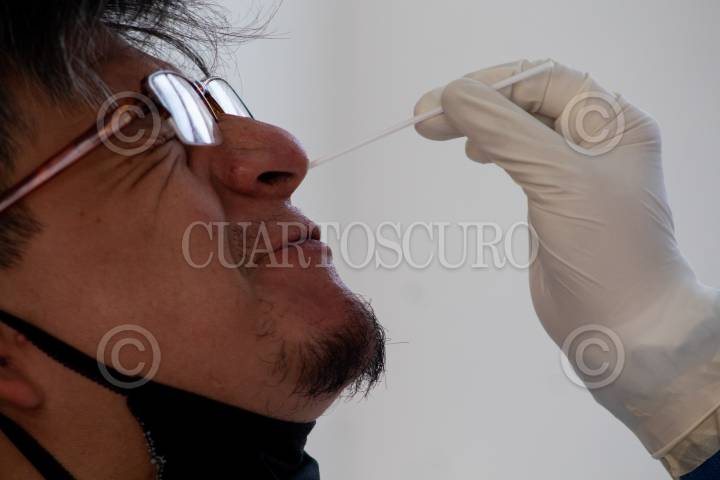 Personal de salud toma la muestras de nariz para detección de SARS-CoV (COVID-19).