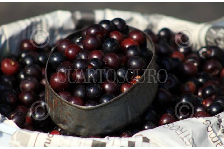 Venta de sardinas de capulines, el cerezo mexicano, en el mercado Adolfo López Mateos.