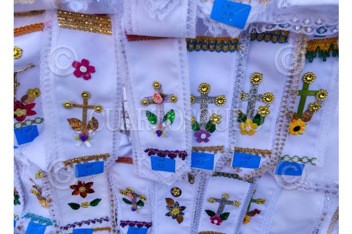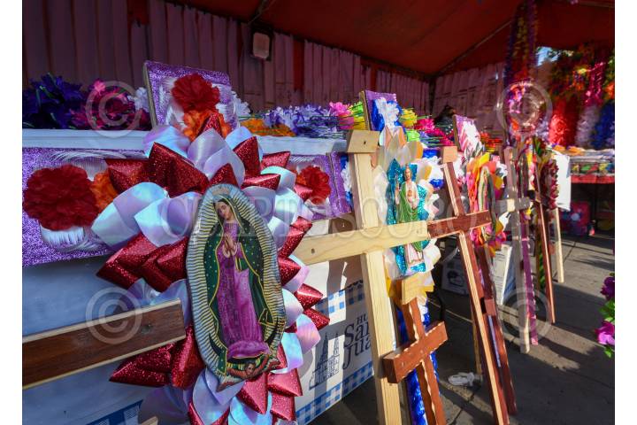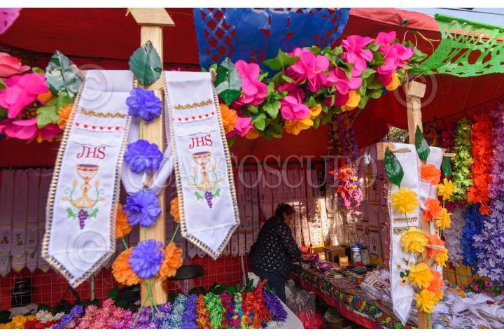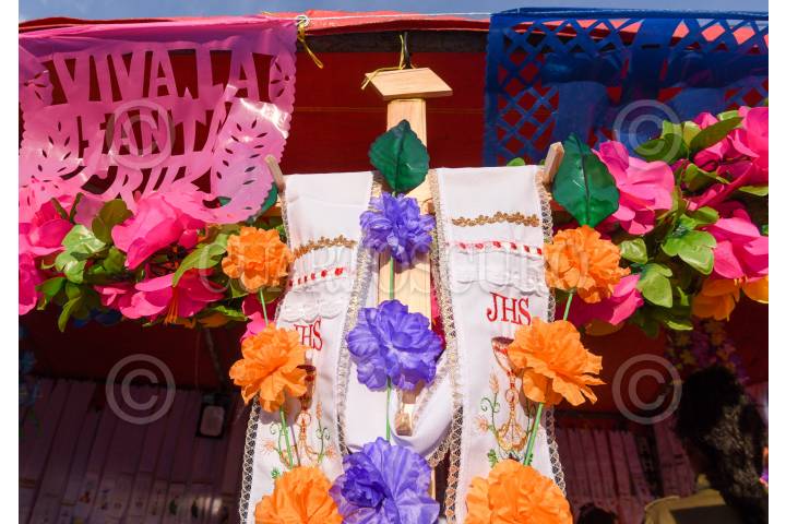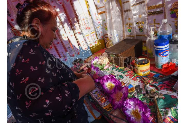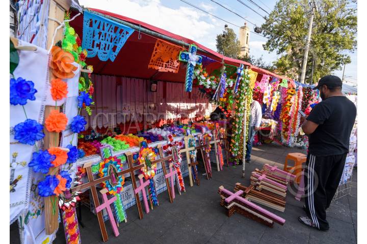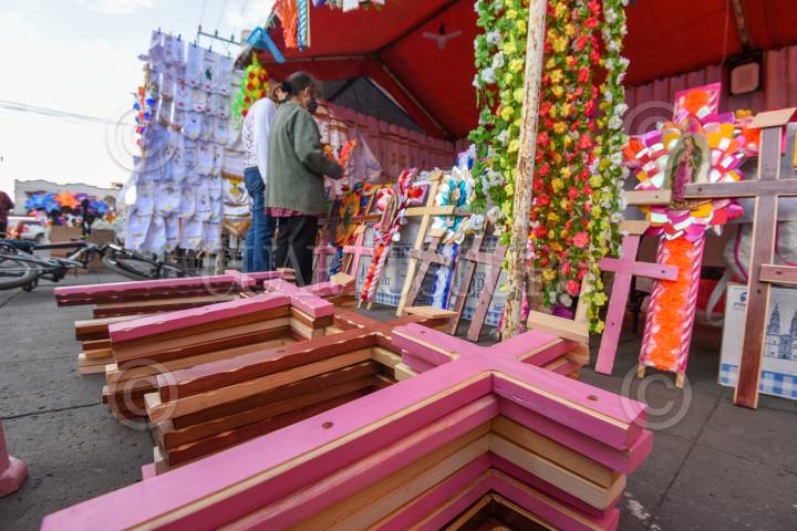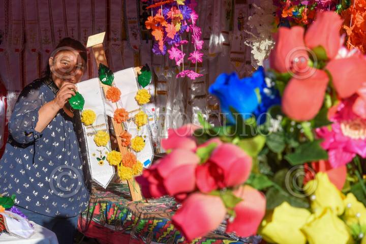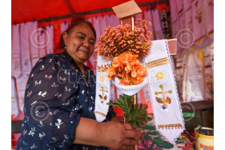 Eva Alcantara lleva más de 45 años dedicándose al armado y adornado de cruces para la celebración del Día de la Santa Cruz este 3 de Mayo, junto con su familia durante tres días se instalan en la plaza Allende en Capultitlán para esta venta de temporada.
