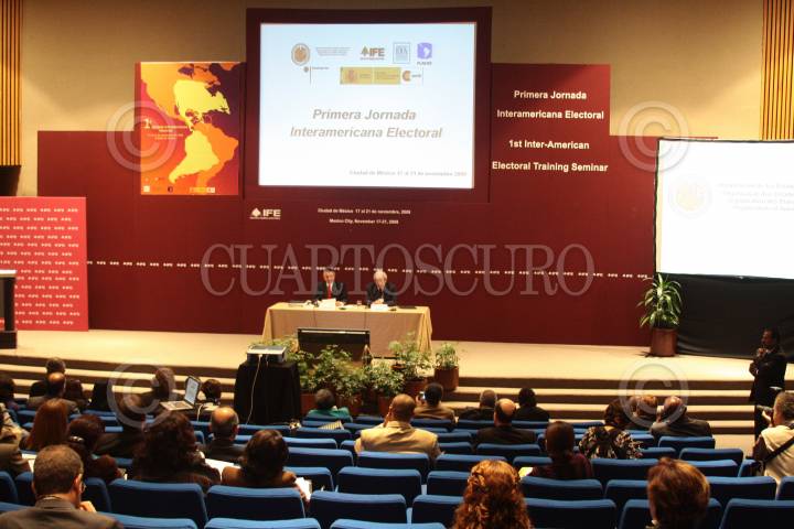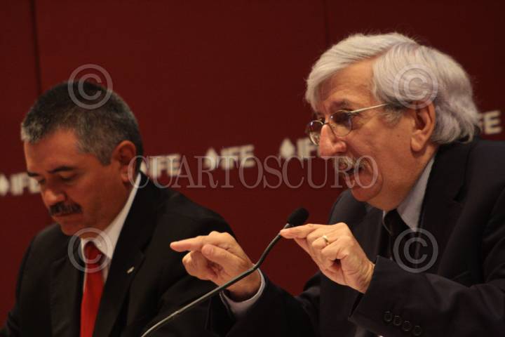 MÉXICO, D.F., 17NOVIEMBRE2008.- Leonardo Valdez Zurita Presidente Consejero del IFE y Dante Caputo Presidente de la Organización de Estados Americanos presidieron la Primera Jornada Interamericana Electoral que se efectuó en las instalaciones del IFE con la Presencia de Estudiosos de las leyes electorales provenientes de distintos países del continente. FOTO: COSME RADA/CUARTOSCURO.COM