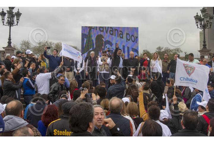 MONTERREY, NUEVO LEÓN, 27ENERO2018.- El gobernador de Chihuahua, Javier Corral, encabezó la Caravana por la Dignidad, "Unidos con Valor Contra la Corrupción". Los manifestantes salieron de Ciudad Juárez (Chihuahua), pasando por Saltillo (Coahuila) y llegando a Monterrey donde militantes locales del Partido Acción Nacional y Movimiento Ciudadano los esperaban para marchar por la Macroplaza y llegar a la Explanada de los Héroes. El contingente recorrerá varios estados del país. FOTO: GABRIELA PÉREZ MONTIEL /CUARTOSCURO.COM