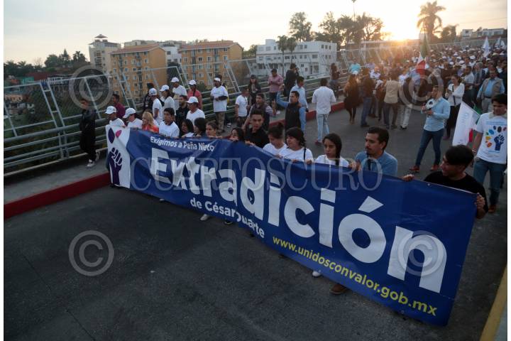 GUADALAJARA, JALISCO, 02FEBRERO2018.- En el día 14 de su recorrido por el país, la Caravana por la Dignidad Unidos con Valor llegó a la capital de la perla tapatía, donde el gobernador de Chihuahua, Javier Corral Jurado, estuvo acompañado por Emilio Álvarez Icaza y Denisse Dresser. FOTO: CUARTOSCURO.COM