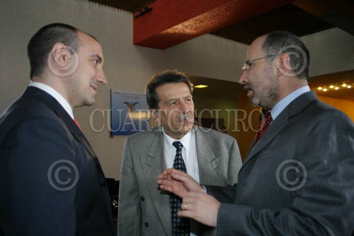 MEXICO, D.F. 26SEPTIEMBRE2005.- Los magistrados Miguel Carbonell, Leonel Castillo y José Ramón Díaz, ministro de la Suprema Corte de Justicia de la Nación conversan durante un receso en el seminario Transparencia y Acceso a la Información. FOTO: Nelly Salas/CUARTOSCURO.COM