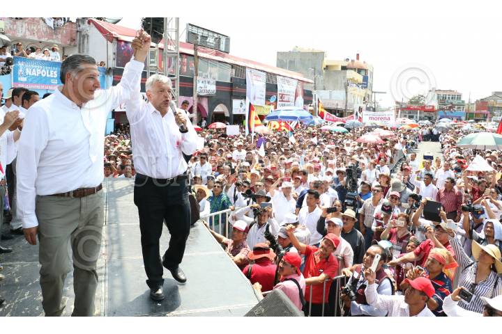 CARDENAS, TABASCO, 28ABRIL2018.- Andrés Manuel López Obrador, candidato de MORENA a la presidencia de la república, se reunió con centenares de personas y simpatizantes de su partido en la plaza municipal, donde dio a conocer su propuesta de gobierno. FOTO: SAÚL LÓPEZ /CUARTOSCURO.COM