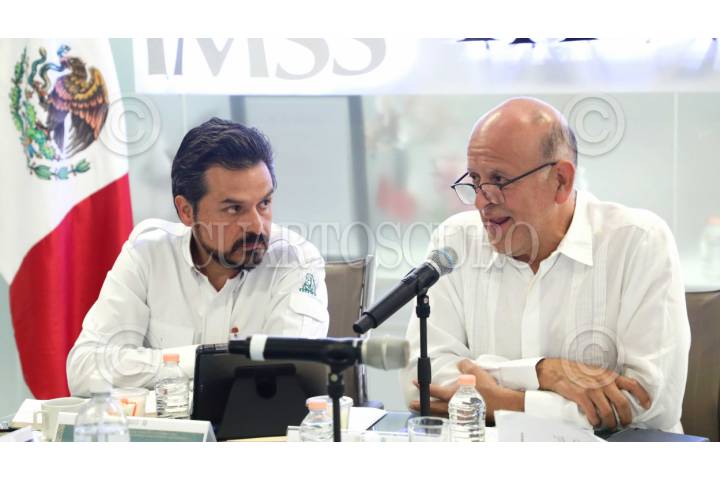 VILLAHERMOSA, TABASCO, 16FEBRERO2024.- Zoé Robledo, director general del IMSS, junto a Marcos Bucio, secretario general del Seguro Social, encabezó la primera sesión extraordinaria del Consejo Consultivo de la Representación del IMSS en Tabasco. FOTO: IMSS/CUARTOSCURO.COM
