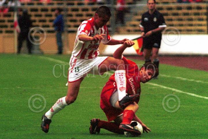 Pepe Cardoso maneja un balón con el pecho ante la llegada de un defensa de Necaxa. FOTO: Pedro Mera/CUARTOSCURO.COM