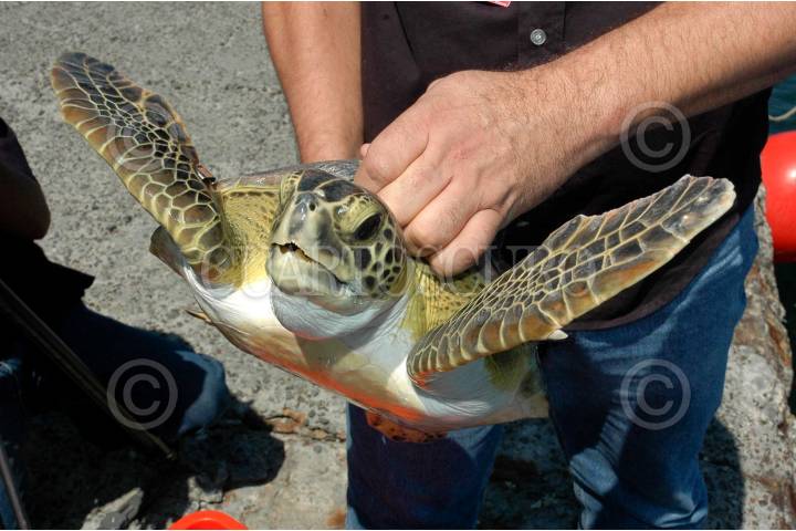 VERACRUZ, VERACRUZ, 25FEBRERO2009.- Autoridades de la PROFEPA y del parque marino arrecifal de Veracruz, liberaron esta mañana dos tortugas carey, que habían caído en redes de pescadores hace mes y medio y después de una cuarentena en las instalaciones del acuario fueron devueltas a su habitad. FOTO: JOSÉ CANDELARIO/CUARTOSCURO.COM