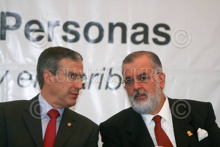 MÉXICO, D.F., 26MAYO2008.- José González Morfín Vicepresidente de la Mesa Directiva del Senado de la República , José Luis Soberanes, durante la reunión de trabajo contra la trata de personas México, Centroamérica y el Caribe. FOTO:SÁSHENKA GUTIÉRREZ/CUARTOSCURO.COM