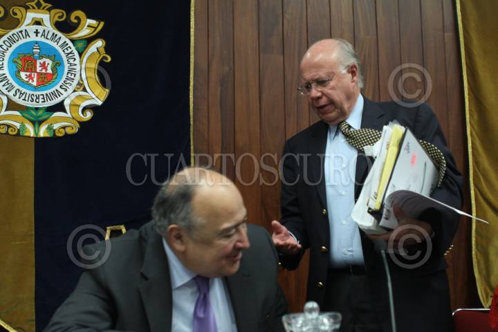 MÉXICO, D.F., 24AGOSTO2010.- José Rivera Banuet, secretario permanente del SELA y José Narro Robles, rector de la Universidad Nacional Autónoma de México (UNAM), durante la inauguración "La integración regional latinoamericana y del Caribe. Retos y perspectivas", esto en el auditorio Mario de la Cueva' de la Torre II de Humanidades en la UNAM. FOTO: MOISÉS PABLO/CUARTOSCURO.COM