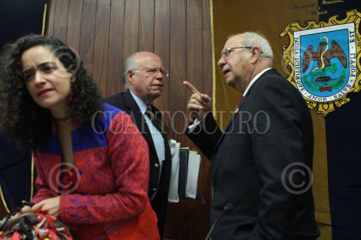 MÉXICO, D.F., 24AGOSTO2010.- Beatriz Leycegui Gardoqui, subsecretaria de Comercio Exterior de la Secretaria de Economía, Gustavo García de Paredes, rector de la Universidad de Panamá y presidente de la Unión de Universidades de América Latina y José Narro Robles, rector de la Universidad Nacional Autónoma de México (UNAM), al finalizar la ceremonia de inauguración "La integración regional latinoamericana y del Caribe. Retos y perspectivas", esto en el auditorio Mario de la Cueva de la Torre II de Humanidades en la UNAM. FOTO: MOISÉS PABLO/CUARTOSCURO.COM