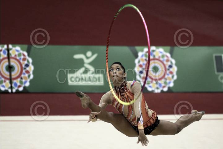 BOCA DEL RÍO, VERACRUZ., 25NOVIEMBRE2014.- La tarde de este martes se llevaron a cabo las competencias de gimnasia rítmica individual en la Arena Veracruz, esto en el marco de los Juegos Centroamericanos y del Caribe 2014. FOTO: FÉLIX MÁRQUEZ /CUARTOSCURO.COM