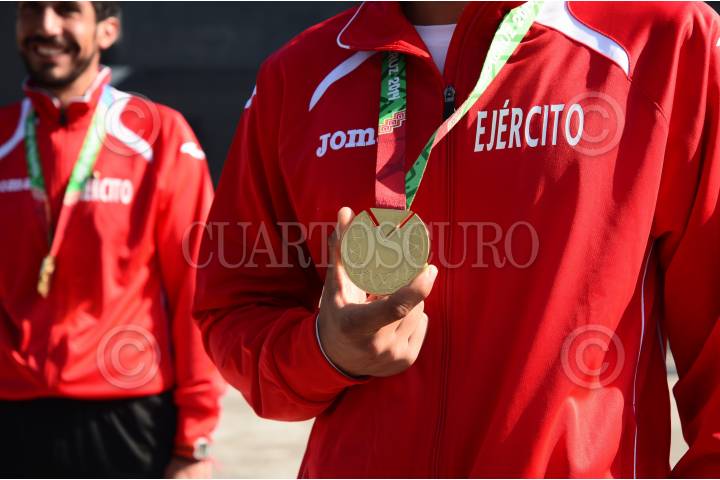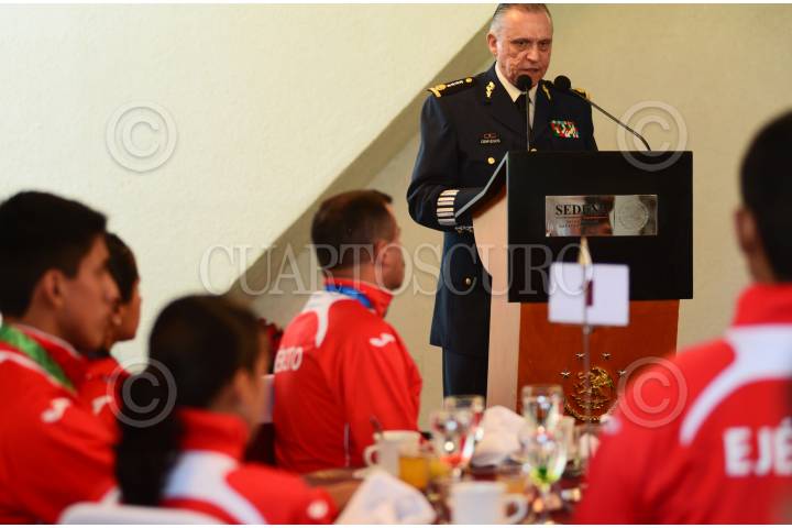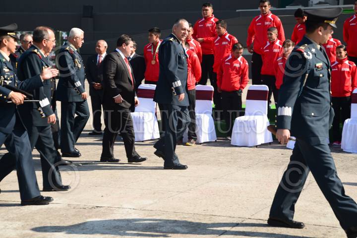 MÉXICO, D.F., 06DICIEMBRE2014.- La Secretaria de Defensa Nacional ofreció esta mañana un desfile y un desayuno para galardonar a los deportistas del ejército nacional que participaron en los Juegos Centroamericano y del Caribe 2014, en la Sede del Heroico Colegio Militar. Los deportistas del ejército ganaron 11 medallas de oro, 9 de plata y 8 bronces. El Secretario de la Defensa Nacional General Salvador Cienfuegos, felicitó as deportistas y los animo para ganar en los próximos juegos Panamericanos. FOTO: ISABEL MATEOS / CUARTOSCURO.COM