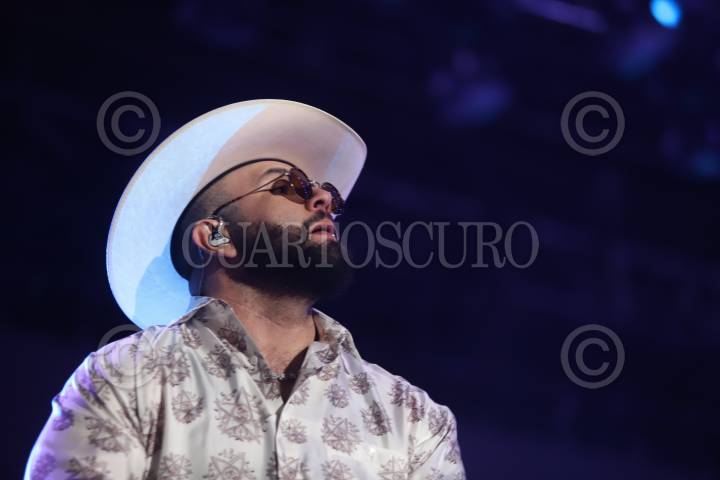 CIUDAD DE MÉXICO, 07DICIEMBRE2024. El cantante colombiano Maluma acompañó a Carín León en su presentación en el Estadio GNP, como parte de su Tour 2024 titulado “Boca Chueca”. FOTO: EDGAR NEGRETE LIRA/CUARTOSCURO.COM