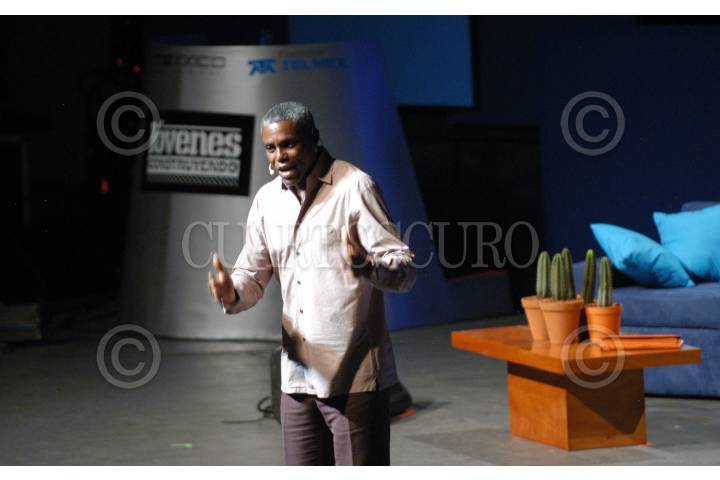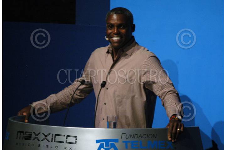 MÉXICO D.F. 27MARZO2007.- El corredor y medallista olimpico Carl Lewis durante su intervención en el foro Jovenes Construyendo México del siglo XXI, en el Auditorio de la Ciudad. FOTO: GUILLERMO PEREA/CUARTOSCURO.COM