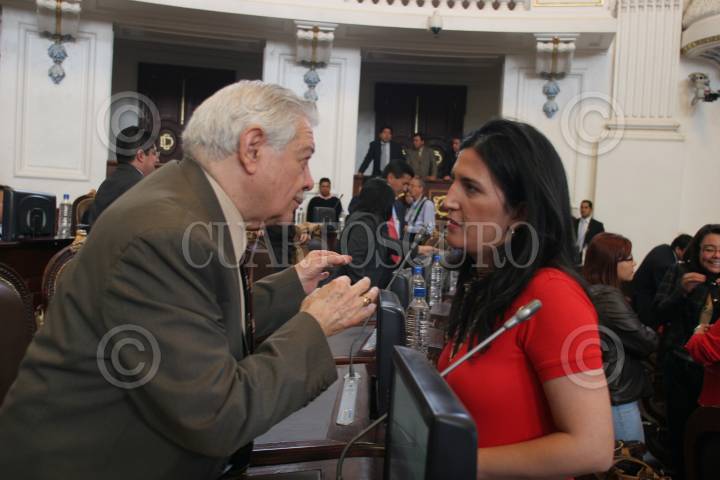 MEXICO, D.F., 13MARZO2009.- El asambleísta Ramon Miguel Labastida y Kenya López, asambleísta del PAN, durante la sesión del día de hoy. FOTO: RICARDO CASTELAN/CUARTOSCURO.COM