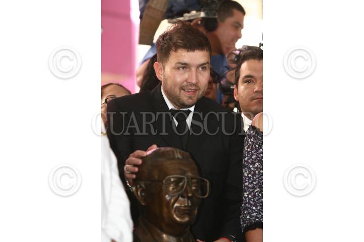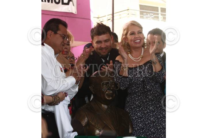 MÉXICO, D.F., 12MARZO2010.- Artistas, productores, integrantes de la banda El Recodo y funcionarios de la delegación Alvaro Obregón develaron el busto a "Cruz Lizarraga" que sera colocado en las inmediaciones de la delegación. FOTO: SAÚL LÓPEZ/CUARTOSCURO.COM