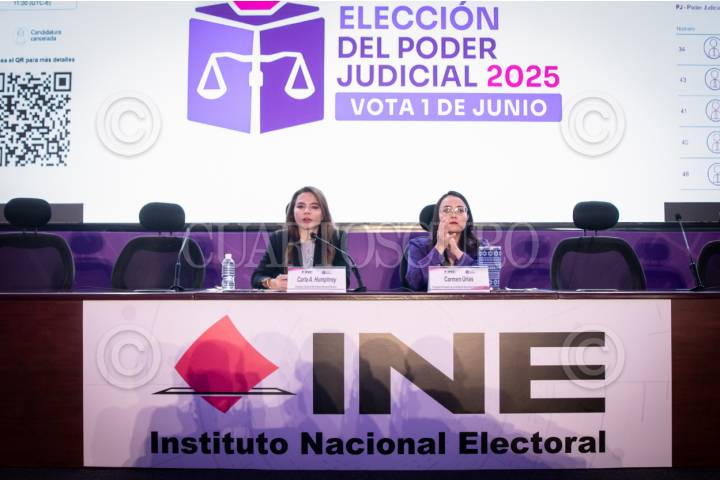 CIUDAD DE MÉXICO, 02JUNIO2025.- Carla Astrid Humphrey Jordan, consejera en el Instituto Nacional Electoral (INE) ofreció conferencia de prensa para hablar sobre los cómputos Distritales judiciales 2025. Los resultados se estarán dando de manera diaria hasta el 10 de junio o antes dependiendo la conclusión. FOTO: ANDREA MURCIA /CUARTOSCURO.COM