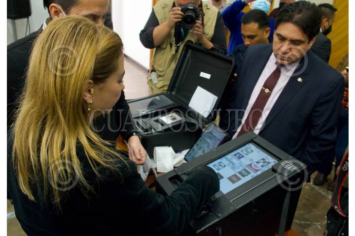 Carla Astrid Humphrey, durante la Exposición de tecnología aplicada para Procesos Electorales y de Participación Ciudadana.