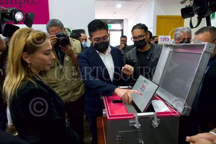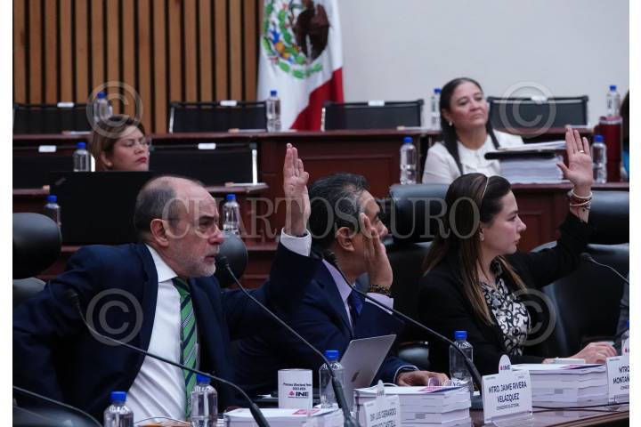 CIUDAD DE MÉXICO, 31JULIO2024.- Los consejeros electorales Jaime Rivera y Jorge Montaño Ventura, así como la consejera Carla Astrid Humphrey votan durante la sesión ordinaria del Instituto Nacional Electoral (INE). FOTO: GALO CAÑAS/CUARTOSCURO.COM