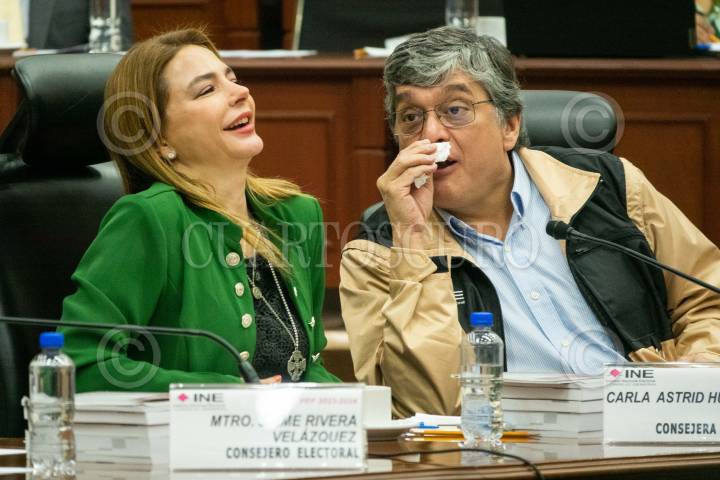 CIUDAD DE MÉXICO, 05SEPTIEMBRE2024.- Jorge Montaño y Carla Astrid Humphrey, consejeros del INE, durante la sesión extraordinaria del Consejo General del Instituto Nacional Electoral (INE) en la que se determinará la anulación de la votación en la alcaldía Álvaro Obregón en donde presuntamente se rebasaron los topes de gasto de campaña por parte de Joaquín López Casarín candidato por Morena, PVEM y PT. FOTO: MARIO JASSO/CUARTOSCURO.COM