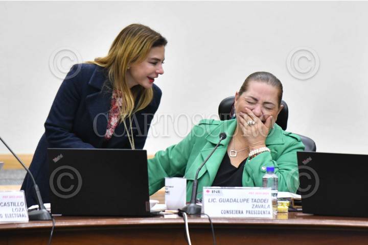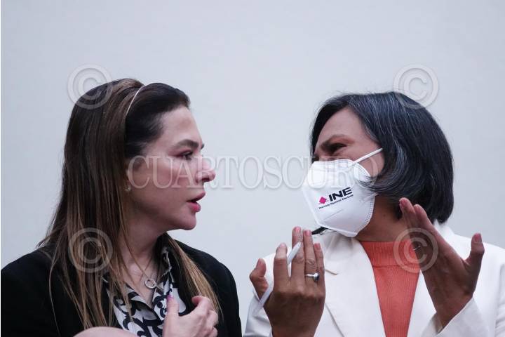 CIUDAD DE MÉXICO, 11ENERO2024.- Carla Astrid Humphrey, consejera electoral, y Guadalupe Taddei, consejera presidenta, durante la sesión extraordinaria del Consejo General del Instituto Nacional Electoral (INE). FOTO: MARIO JASSO/CUARTOSCURO.COM