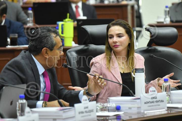 CIUDAD DE MÉXICO, 01ABRIL2025.- Carla Astrid Humphrey, y Uuc-kib Espadas, consejeros electorales del Instituto Nacional Electoral (INE), durante sesión extraordinaria del INE en la que se aprobaron las pautas para la transmisión en Radio y Televisión de los mensajes de las autoridades electorales para la promoción del Proceso Electoral Extraordinario del Poder Judicial de la Federación 2025. FOTO: MARIO JASSO/CUARTOSCURO.COM