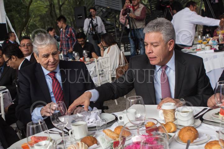CIUDAD DE MÉXICO, 11JUNIO2018.- Carlos Aceves del Olmo, lider de la Confederación de Trabajadores de México, y David Penchyna Grub, titular de Infonavit, durante el lanzamiento del nuevo progama Socio Infonavit, el cual busca obtener descuentos en productos y servicios en 14 marcas para sus derechohabientes. FOTO: TERCERO DÍAZ /CUARTOSCURO.COM